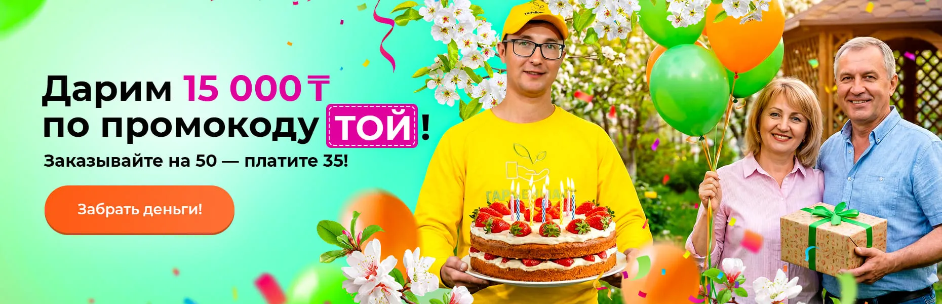 Дарим 15 000 ₸ по промокоду ТОЙ! Заказывайте на 50 — платите 35!